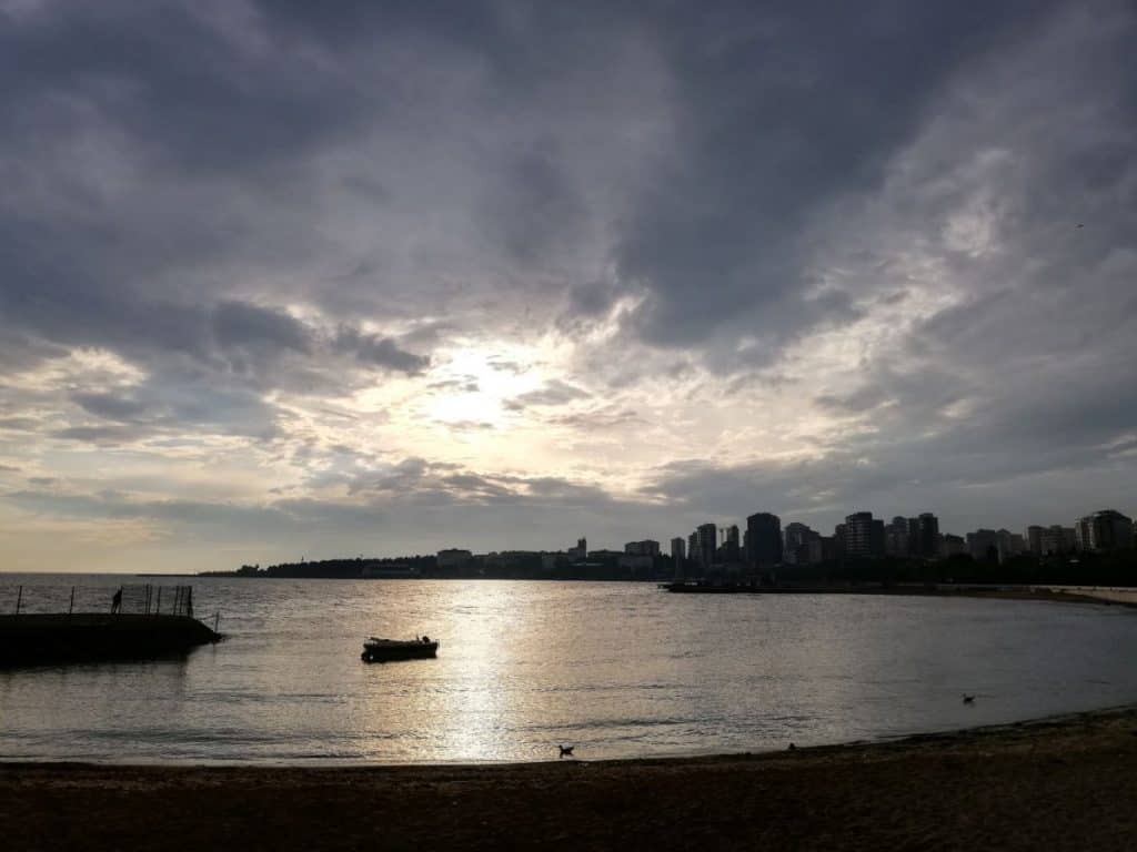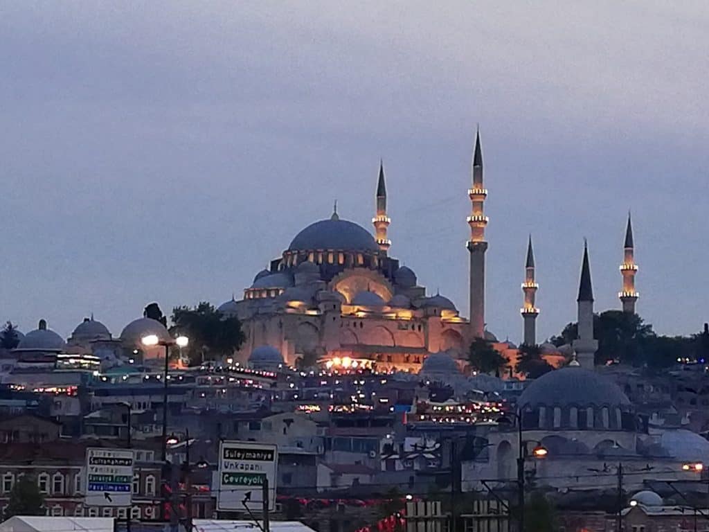 In the hotel I received also a map and I knew where I was, but not the individual buildings. So I followed the Scandinavians and also took the tram. Good choice, they knew their way around better and after 10 minutes we arrived at the Blue Mosque. Here I lost them and followed my guess and the crowds and found Hagia Sophia, the Obelisk, another mosque and finally the closing Grand Bazaar. At Hagia Sophia an beautiful young Russian lady asked me to take a photo of her. I did it with pleasure. On the way back I was very hungry and stopped at a bar style self service arrangement, because another lady who just left, sad in passing by “it is really good food”. As it also looked good in the display I did it and had great noodles, rice and yogurt salad. And all for 12 Lira, another 2, Euro. Back to the ferry and crossing back in charming twilight. To find the right group taxi took about 10 minutes and another young lady next to me helped me to tell the driver where I wanted to get off. It worked not so well, I was dropped 2 km before my destination. Good digestive walk “home” at 10 p.m. along the shores. No problem whatsoever.